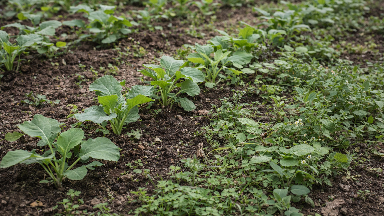Tegelijkertijd geldt: niet elk onkruid is direct schadelijk. Een beetje begroeiing tussen grotere gewassen kan juist gunstig zijn. Het beschermt de bodem tegen uitdroging, voorkomt verslemping bij regen, en voedt het bodemleven.